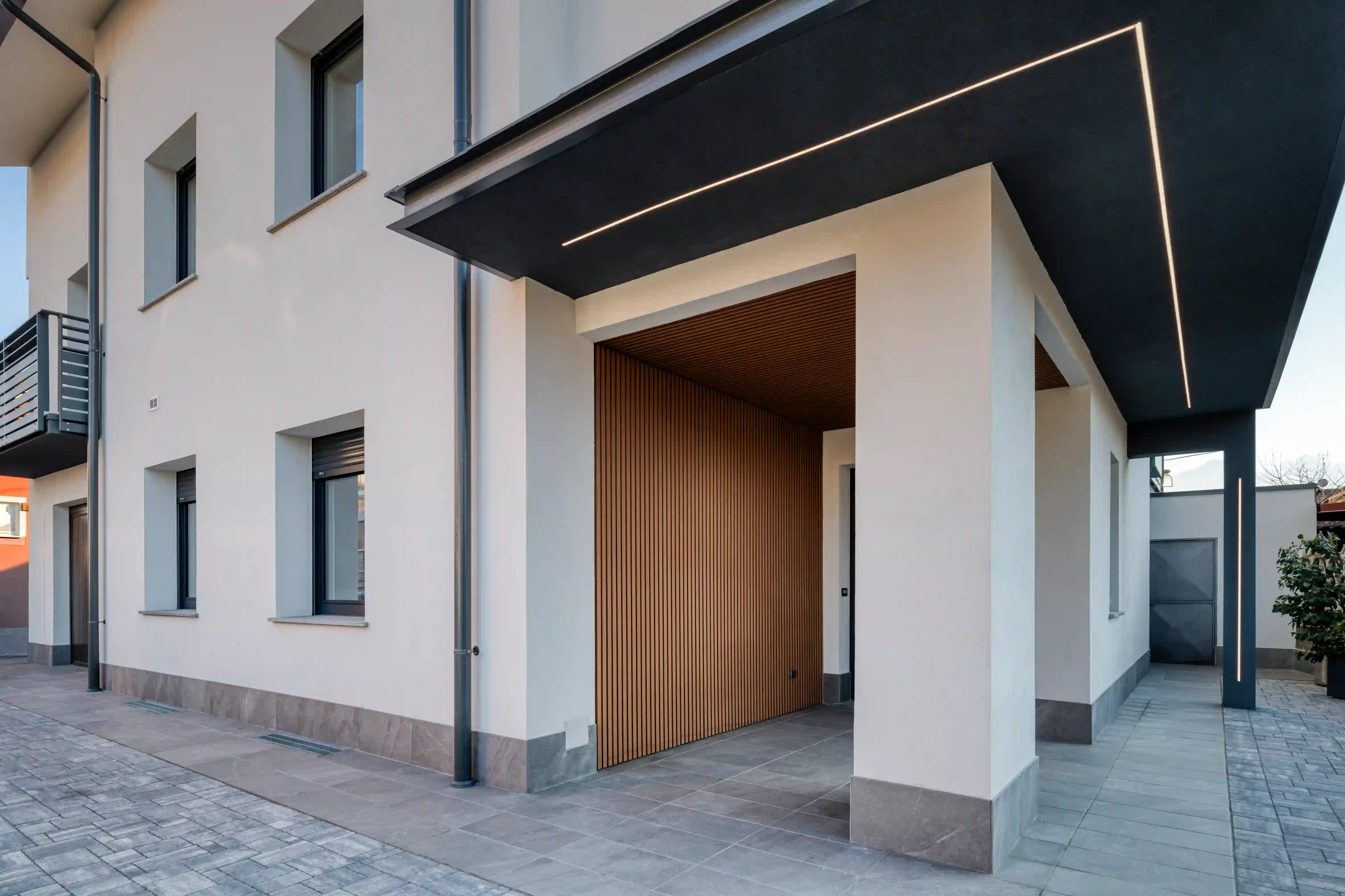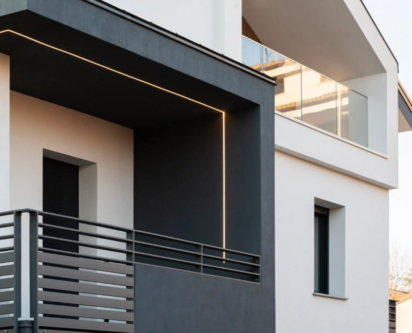 L’immagine dell’edificio è stata aggiornata con l’inserimento di nuovi fascioni in aquapanel e parapetti in vetro e ferro, che ne definiscono un linguaggio più contemporaneo. Le pavimentazioni esterne e dei balconi sono state rifatte e la tinteggiatura finale ha uniformato l’intervento.