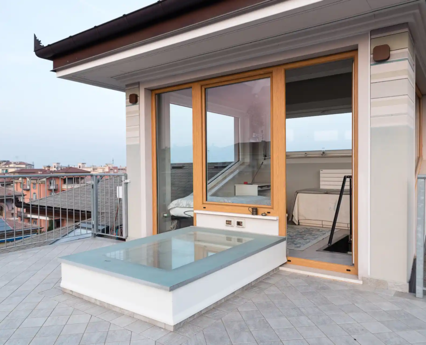 La trasformazione del sottotetto ha permesso di recuperare uno spazio inutilizzato, attraverso una sopraelevazione mirata che ha dato origine a un nuovo alloggio. Sono stati ricavati ambienti luminosi e aperti verso l’esterno, grazie a nuove aperture e all’utilizzo di finiture chiare e legno spazzolato.