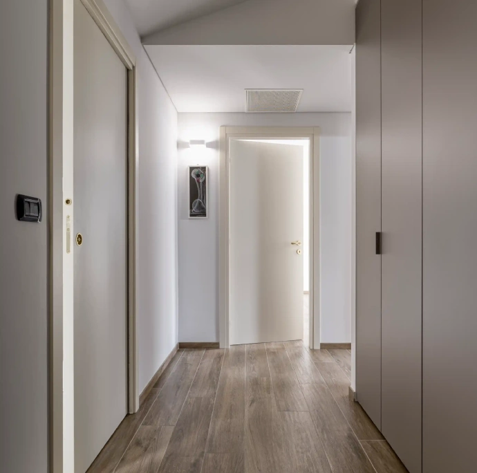 L’intervento ha interessato entrambe le unità abitative, con lavorazioni differenziate ma coordinate. Per una unità sono stati eseguiti isolamento e sostituzione degli infissi, mentre per l’altra è stato previsto l’adeguamento delle aperture, il rifacimento della copertura e il recupero del sottotetto a fini abitativi.