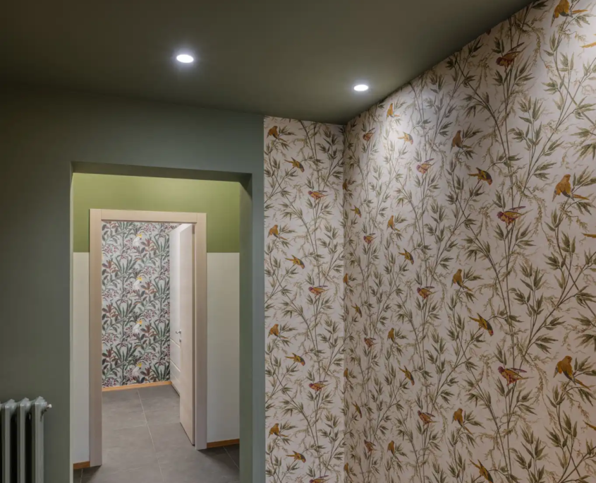 L’intervento ha interessato anche le prestazioni energetiche, con l’integrazione di nuovi impianti e l’inserimento di contro-pareti isolanti. Materiali contemporanei e un sistema di climatizzazione contribuiscono al comfort abitativo, mentre la cura dei dettagli valorizza ogni ambiente con equilibrio e coerenza.