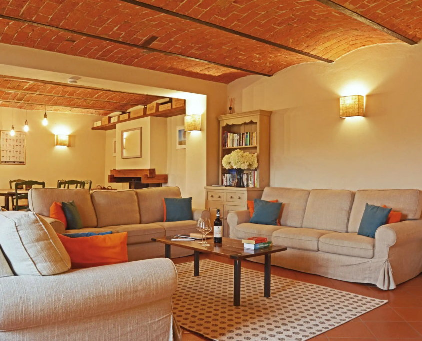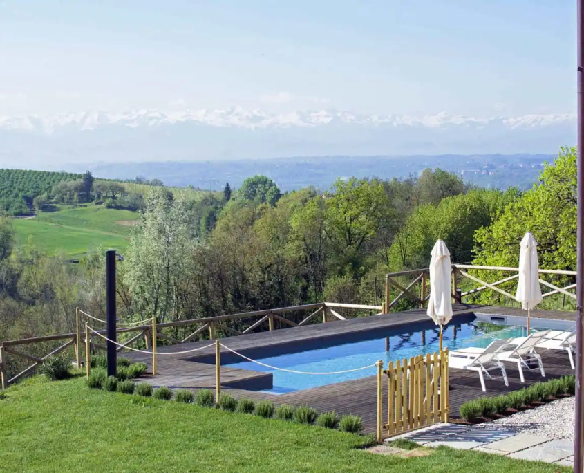 Il progetto ha interessato l’edificio principale, con l’inserimento di nuove aperture e una copertura in legno isolata con fibra naturale. Le superfici alternano finiture chiare e mattoni a vista, mentre serramenti e persiane in legno richiamano la tradizione locale. La piscina esterna completa l’intervento, integrandosi con i volumi della casa.
